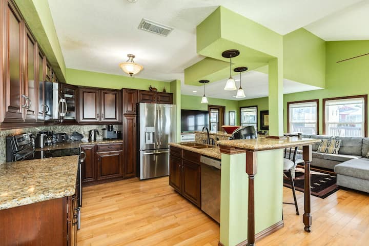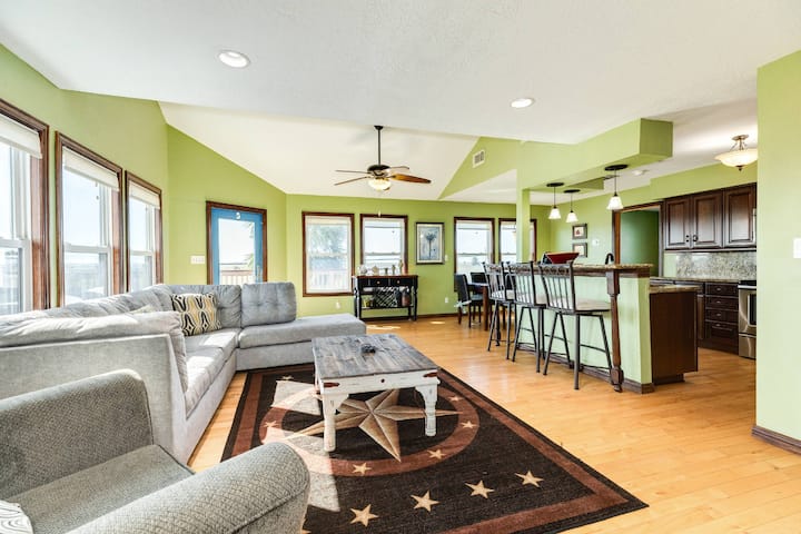 Deze prachtig gerenoveerde woning met 3 slaapkamers en 2 badkamers aan de baai biedt een adembenemend, vrij uitzicht op de baai vanuit de familiekamer, de eetkamer en de keuken. Gelegen in de Jamaica Beach-gemeenschap aan het kanaal, ligt het op slechts een klein eindje rijden van het strand. Het dek rondom is perfect om in de zon te loungen. Geniet van de directe toegang tot de baai en kies uit eindeloze wateractiviteiten. Neem de kajaks mee voor een tocht door de grachten naar Galveston Bay. Daag familie en vrienden uit voor een potje tafelvoetbal of darts. Sluit de dag af met een diner en een zonsondergang met uitzicht op het kanaal.