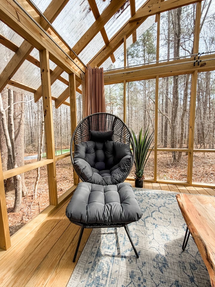 ACHT (8) TOTALE ACCOMMATIEOPTIES — We hebben acht (8) totale accommodatieopties hier in Holly Forest — twee hutten, twee screenhouses, twee glamping-tenten, een loft en een huis met 3 slaapkamers en 2 badkamers. Om de andere advertenties te vinden, klik je op onze profielfoto bovenaan deze advertentie.