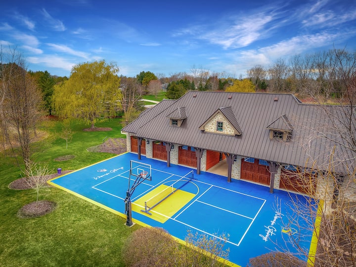 Dit landgoed van 10.500 vierkante voet ligt op zes privéacres, maar op enkele minuten van Whistling Straits, Kohler en Lake Michigan, en is jouw canvas voor verbinding. Met zeven slaapkamers, zestien bedden, zeven open haarden, een privé-speelhal, een binnenzwembad en een bubbelbad voor veertien personen is elk detail samengesteld om de beste Wisconsin Getaways-ervaring te bieden.