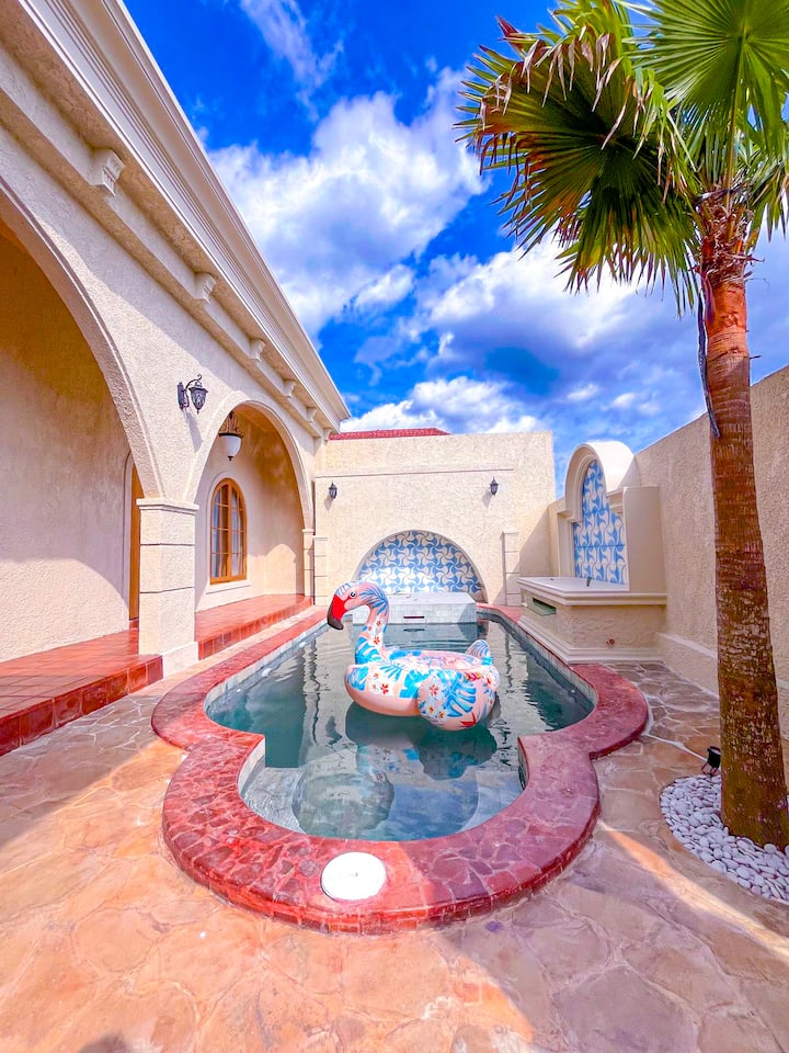 Dit is een van de weinige accommodaties in de omgeving met een zwembad.