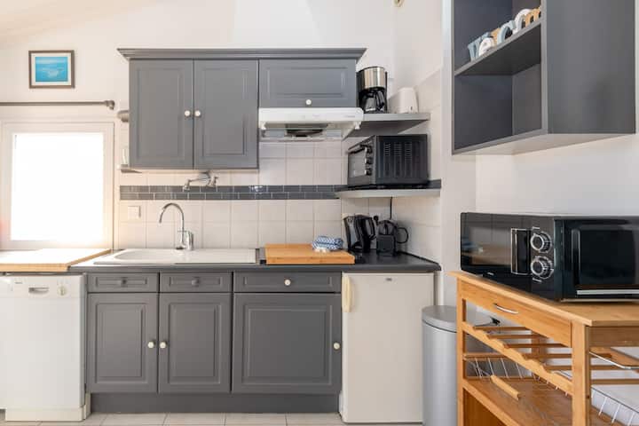 Dichtbij de haven, markt, strand, winkels en restaurants, op een zeer rustige plek.