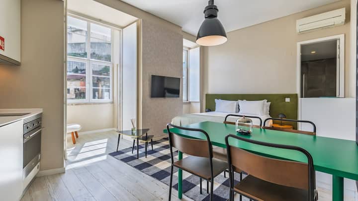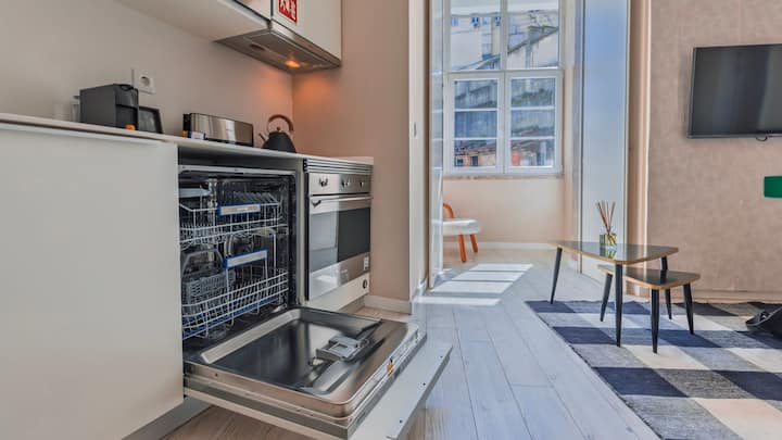 Het appartement is gelegen in het centrum van de stad, Chiado. Het winkelcentrum van Lissabon. Deze levendige en kosmopolitische omgeving herbergt een verscheidenheid aan charmante oude boekhandels, lokale en grote internationale modemerken, restaurants en cafés. Café Brasileira, een van de oudste cafés in de stad, is hier te vinden.