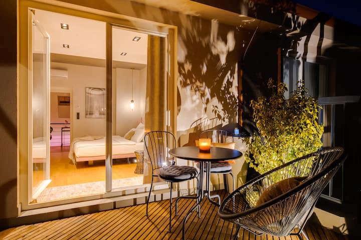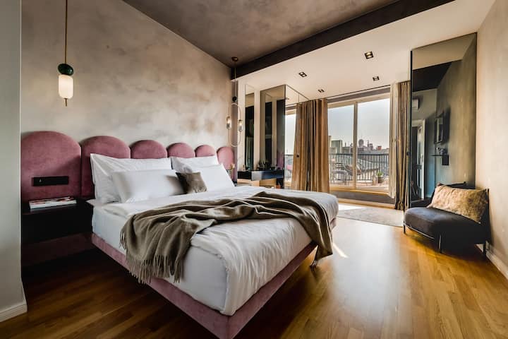 • Geniet van een adembenemend uitzicht op de skyline van Praag vanaf je privéterras