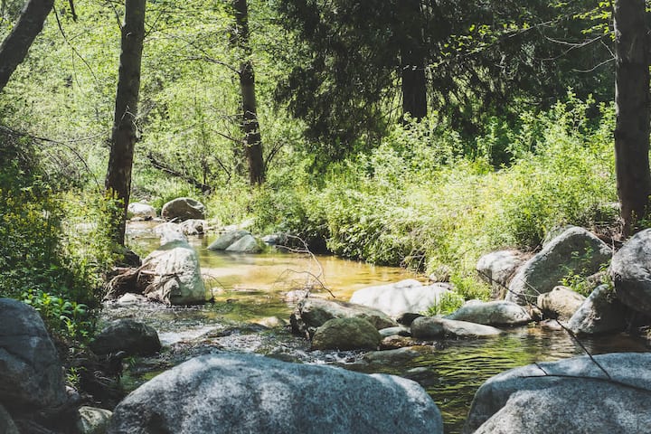 - 3 Boheemse hangmatten: 1 Creekside, 1 Under Shady Pines, 1 op het bovendek met uitzicht op het bos