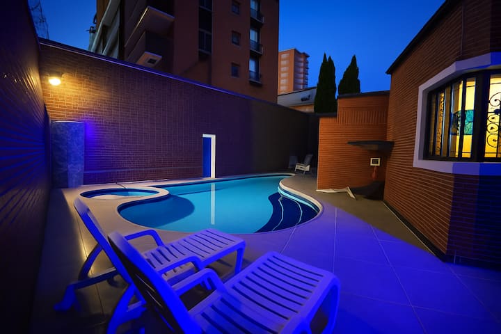 Dit is een van de weinige accommodaties in de omgeving met een zwembad.