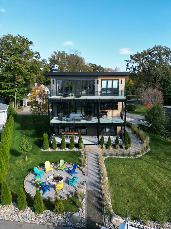 Privéstrand, bubbelbad, uitzicht op het meer, vuurplaats, golf