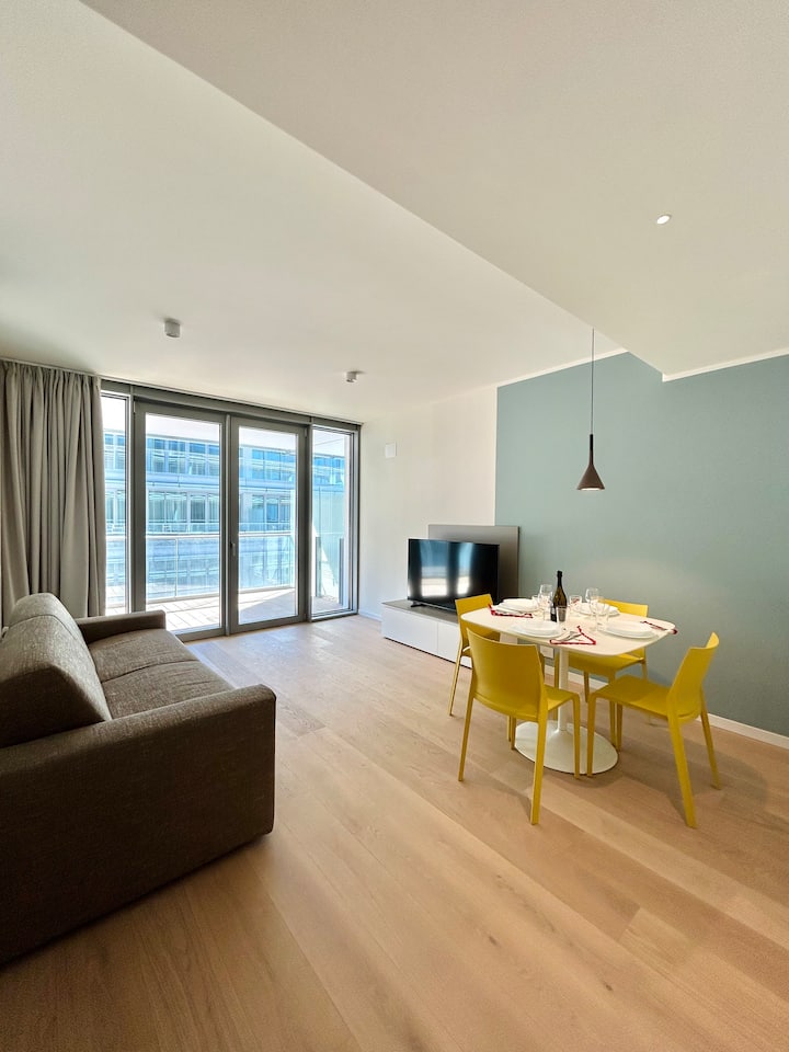 Dit lichte appartement is pas gebouwd en is daarom volledig nieuw, uitgerust met ultramoderne apparaten.