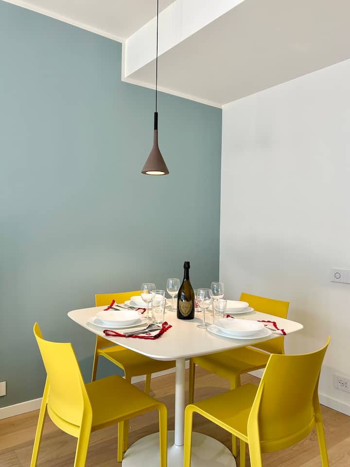 Een van de hoogtepunten van het appartement is het prachtige terras, smaakvol ingericht en ontworpen om momenten van puur buitenplezier te bieden. Hier kun je lunchen of dineren en genieten van de zeebries, dankzij een comfortabele tafel met stoelen. Twee gezellige fauteuils nodigen je uit om te ontspannen na een dag doorgebracht tussen de zee en de wonderen van de stad.