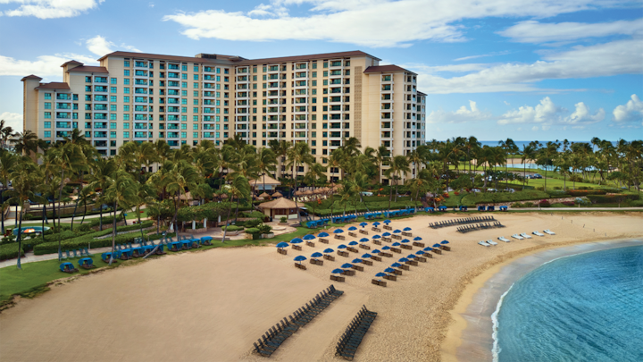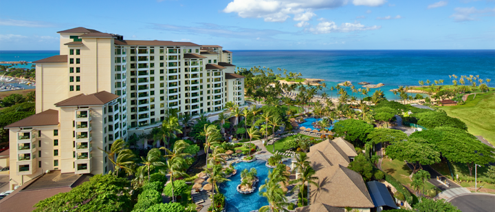 De prachtige westkust van Oahu is de thuisbasis van Marriott's Ko Olina Beach Club, waar watervallen en fonteinen je verwelkomen. Deze afgelegen oase aan het strand ligt op slechts 18 mijl van Honolulu, in Ko Olina Resort & Marina en op slechts een half uur van Honolulu