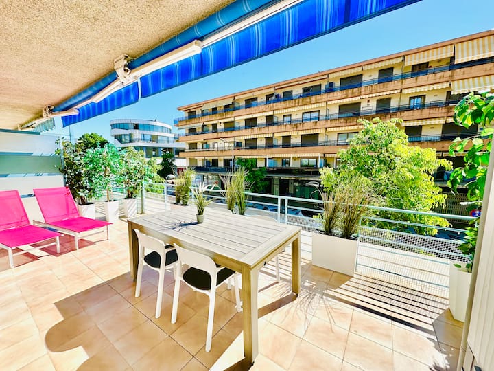 Terras en zwembad aan de kust