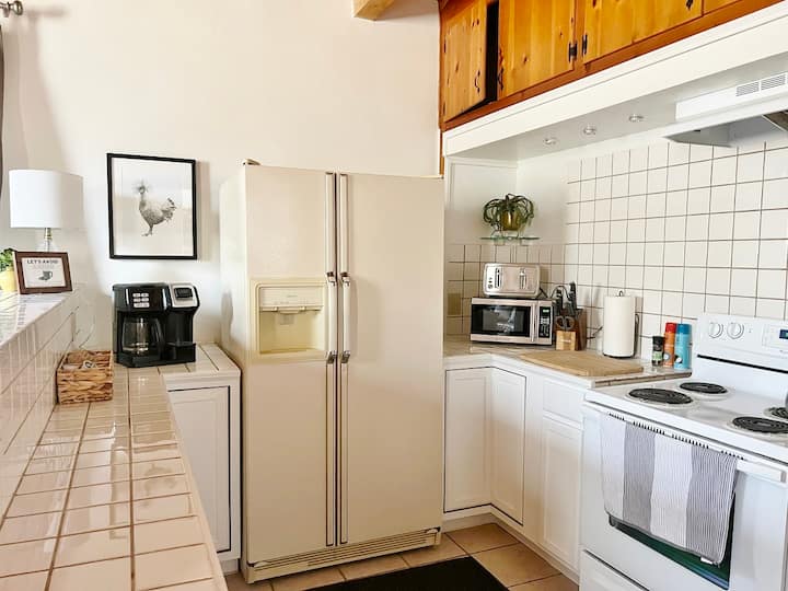 Geniet van de bergen terwijl je zorgen verdwijnen en de rust van de natuur in je zal stromen terwijl je geniet van je tijd in het Grandview Big House. Het grote huis heeft twee uitnodigende woonruimtes met twee volledige keukens, twee eetruimtes en drie prachtige slaapkamers, waarvan er één een uitgebreide mastersuite is met een eigen badkamer, een eigen houtkachel en een eigen balkon. The Big House is voorzien van een bohemien minimalistische stijl met een vleugje rustieke uitstraling, bespat met kunstwerken van Kern County Artists. Onze hoop is dat deze ruimte comfort en schoonheid biedt die je herstelt en inspireert en een heerlijk verblijf mogelijk maakt!