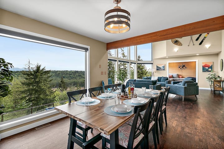 FIFA World Cup Basecamp in de buurt van Seattle — Rainier Vista is perfect voor grote groepen en biedt een rustig toevluchtsoord net buiten de stad met gemakkelijke toegang tot wedstrijden van het wereldkampioenschap. Sla de drukte en files over terwijl je dichtbij genoeg blijft om naar Seattle te rijden of de trein te nemen. Met ruimte om je te verspreiden, een adembenemend uitzicht en voorzieningen in resortstijl is dit de ideale thuisbasis voor WK-fans die samen reizen.