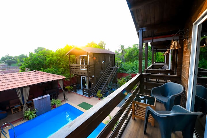 >Resort heeft 10 kamers met uitzicht op de tuin en alle kamers hebben open balkons en het zwembad wordt ertussen gedeeld.