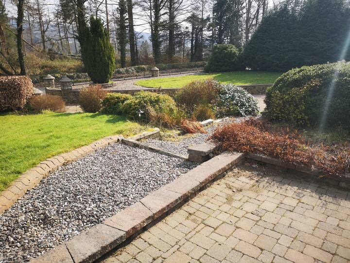 Het terrein beschikt over een prachtige verharde oprit, kronkelende grindpaden, gemanicuurde hagen en afgelegen zitplaatsen waar je tot rust kunt komen en weer in contact kunt komen met de natuur. Met geen gebrek aan frisse lucht en open ruimte is het de ideale ontsnapping.