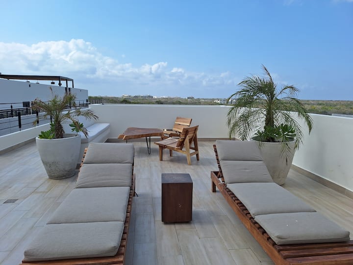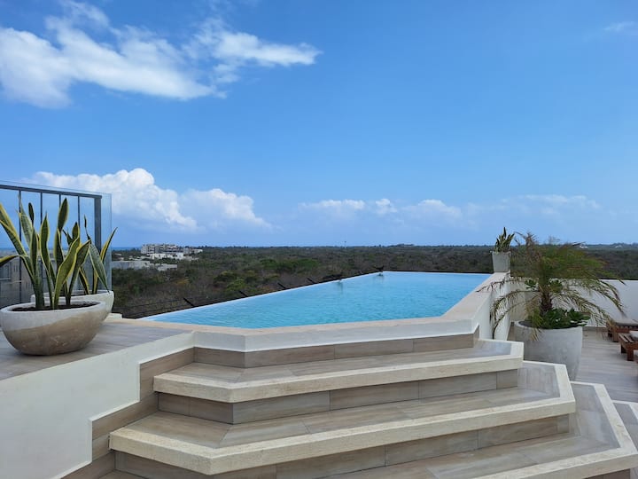 Ontspan op het dak, het overloopzwembad met uitzicht op de oceaan en geniet van een vakantietijd van wereldklasse in Tulum - allemaal zonder de schilderachtige jungleachtergrond te verlaten die ons omringt.