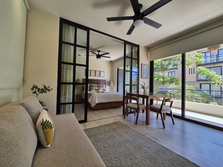 Onze Jungle Suite ligt in het weelderige groen van Tulum en is een oase van modern comfort en stijl.