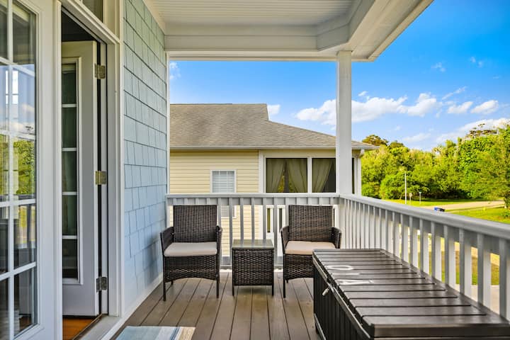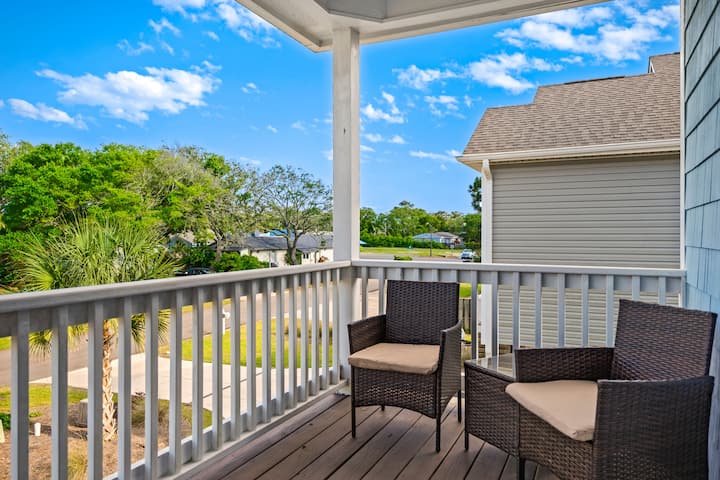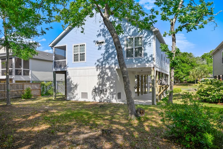 Dit moderne en ruime huis ligt in een rustige buurtstraat in het Yaupon Beach-gedeelte van Oak Island en is klaar om je hele gezin te verwelkomen, inclusief maximaal twee honden met een gewicht van 60 lbs of minder per reservering. Verschillende restaurants en winkels liggen op vijf minuten lopen van deze woning en de dichtstbijzijnde toegang tot het strand ligt op minder dan een kilometer van je