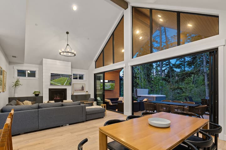 Ontdek de rust in Panorama Pines Retreat, een luxe verblijf met vier slaapkamers en 4,5 badkamers, verscholen tussen de naaldbomen in het Nelson Preserve Forest van Suncadia Resort. Perfect voor gezinnen / groepen, deze ruime, uitnodigende woning biedt plaats aan maximaal 11 personen, beschikt over een gastronomische keuken, een overvloed aan natuurlijk licht, open haard, gezellige en comfortabele bedden en een ruime patio met een bubbelbad, Smart 65” tv en vuurplaats. Alles op loopafstand van de levendige voorzieningen en evenementen van Suncadia's Nelson Farm en wandel-/fietspaden.