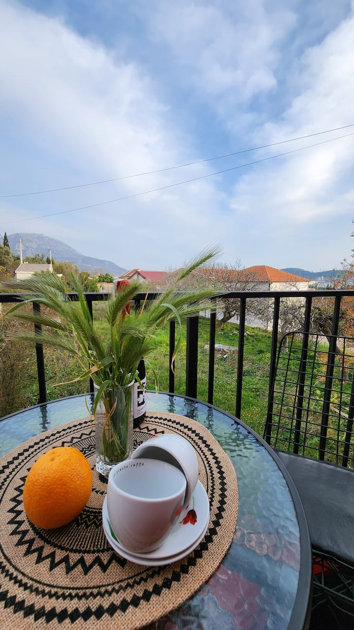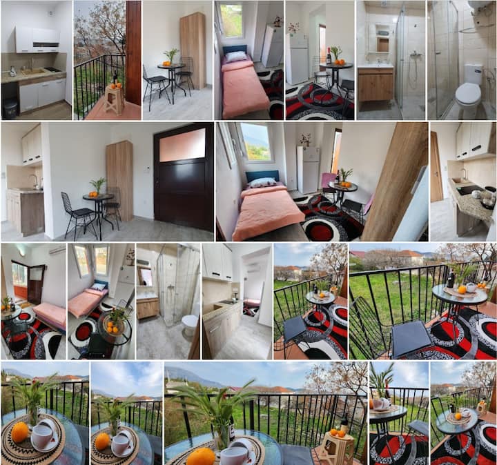 Welkom bij Villa Bamboo Adriatic, een gebouw van twee verdiepingen op 600 m van het strand van Šušanj in de buurt van IDEA & AROMA-supermarkten. Gezellig 1-BR studio, bovenste verdieping, balkon op het zuidoosten, Rumia berg, rustige tuin met granaatappelbomen en een schildpaddenfamilie die erin woont.