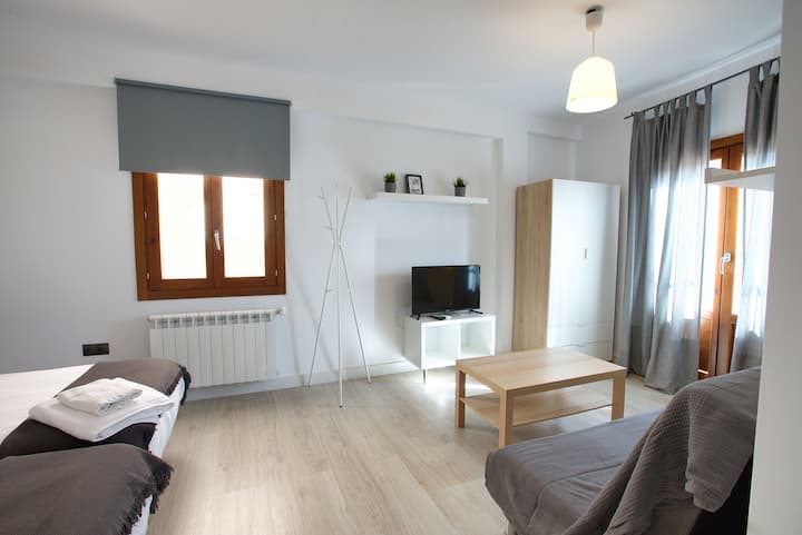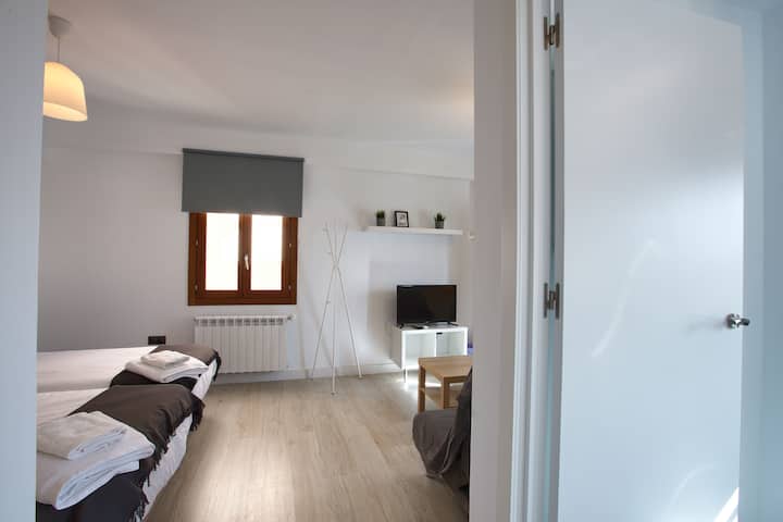 - Een abuhardillada-kamer met twee slaapkamers, elk uitgerust met twee eenpersoonsbedden. Deze ruimte is voorzien van een eigen eetruimte met tafel en vier stoelen, evenals een kleine keuken met kookplaat, magnetron, koffiezetapparaat, broodrooster en keukengerei, allemaal met uitzicht op de Hoz del Huécar en Cerro del Socorro.