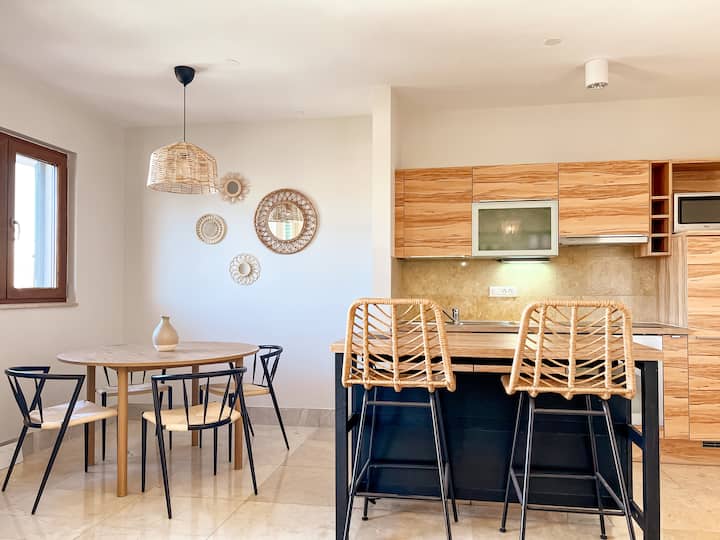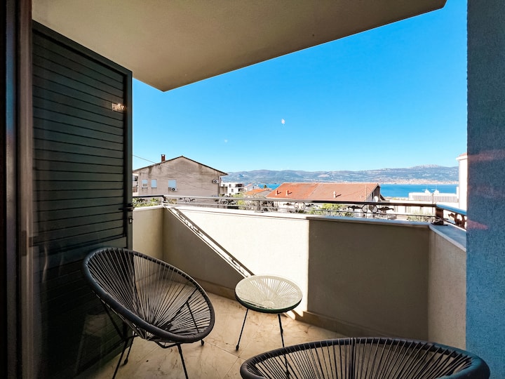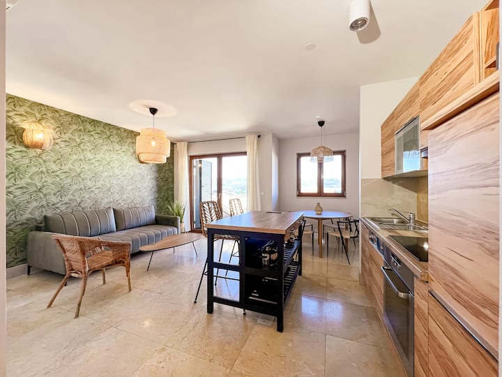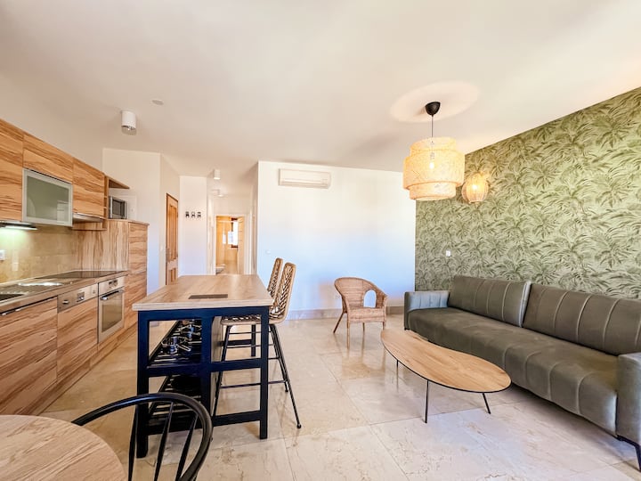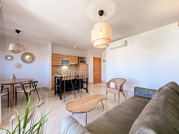 2 slaapkamers, groot zwembad, balkon en uitzicht op zee