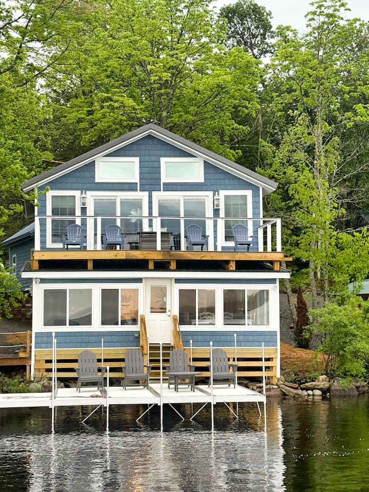 Moderne luxe en een serene plek aan het meer bij Boyd Lake, Maine. Stap vanuit je slaapkamer naar een terras op de tweede verdieping, dat een prachtig uitzicht op het meer biedt. Geniet beneden van het uitzicht vanaf je veranda, waar grote ramen het meer omlijsten. Ontspan met een boek op je eigen aanlegsteiger. Geniet van de kajaks en vuurplaats. Maak een dagtocht naar Bar Harbor. Of je nu op zoek bent naar een romantisch uitje of gezinsplezier, deze woning biedt de ultieme "Maine"-ervaring.