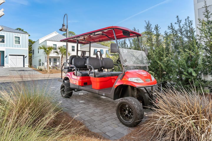 Handige golfkar met zes zitplaatsen. Zwembad, strand en 30A restaurants liggen op slechts een steenworp afstand!
