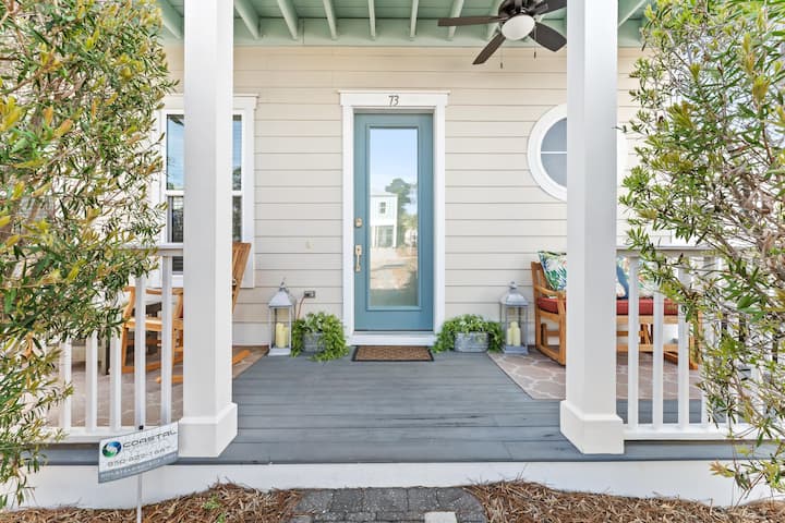 Onze prachtig ingerichte en mooi ingerichte 3-slaapkamer, 2,5-badkamer townhome ligt tussen de palmen in Serenity at Dune Allen, een charmante gemeenschap centraal gelegen langs 30A. 73 Old Winston Circle ligt op een steenworp afstand van het gemeenschappelijke zwembad en op slechts een korte wandeling of LSV-rit van het suikerwitte zand en smaragdgroene water van de Golf van Mexico. Ons huis met drie verdiepingen heeft een open indeling, een volledig uitgeruste keuken, een overdekt balkon en gemeubileerde voor- en achterveranda's. Laat zorgen achter terwijl je naar het strand vaart in de 6-zits LSV of pak een handdoek en ga naar het strand. De toegang tot het strand ligt op slechts twee blokken afstand (3 minuten rijden met LSV).