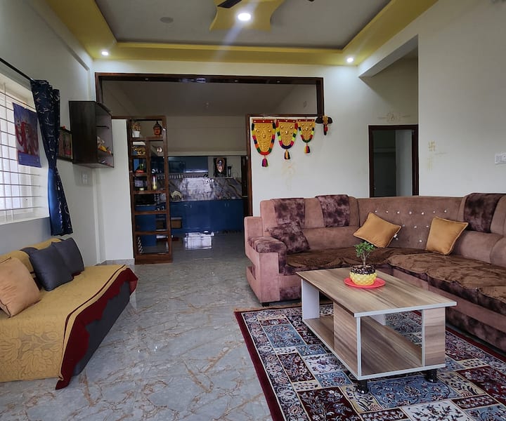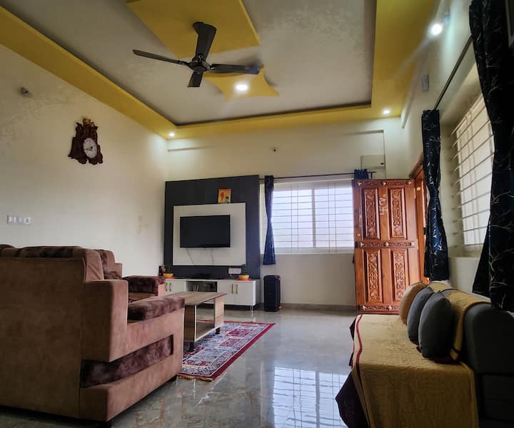 Ontsnap naar AVI Farmhouse, een schilderachtige retraite van 20.000 vierkante voet aan de voet van Nandi Hills, op slechts 60 km van Bangalore. Geniet van 3 gezellige slaapkamers, een privézwembad, regendans, vreugdevuur, prieel, speelruimte voor kinderen en een dakterras met een prachtig uitzicht. Huisdier- en koppelvriendelijk met een volledige keuken, wifi, UPS-back-up en veilig omheind terrein. Ideaal voor familiebijeenkomsten, feesten en rustige uitjes. Swiggy/Zomato beschikbaar.