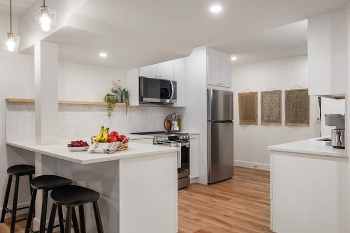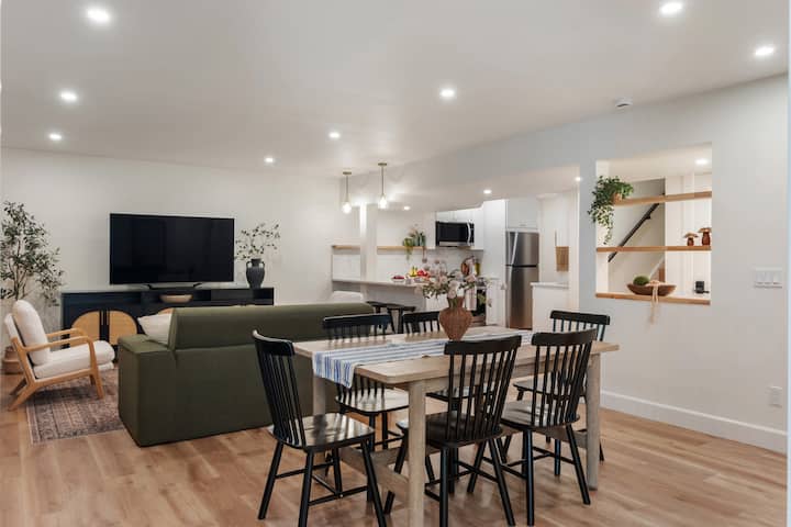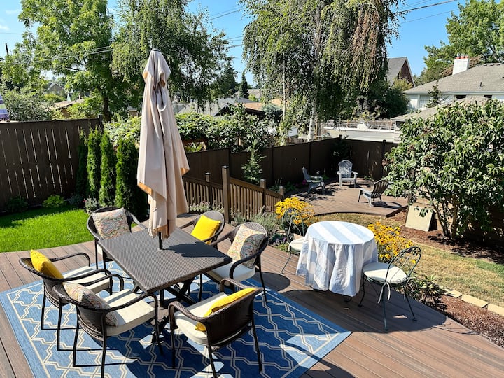 Verblijf in een nieuwe ruimte van 1200 vierkante meter, perfect voor korte weekenden of een week lang verblijf. 10 minuten naar het centrum, vijf minuten naar het strand van Alki, 18 minuten naar de luchthaven, 15 minuten naar stadions (neem de bus of watertaxi). Toplocatie met een 93 walk-score! Loop naar doorvoer, restaurants, koffiehuizen en parken.