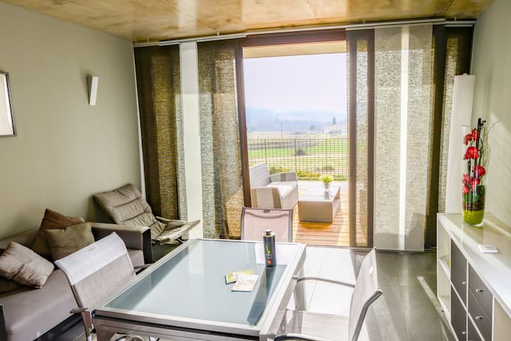 Huis van 50 m² met eigen terras, ideaal voor 2 tot 4 personen. Rustig, natuur en comfort op 5 minuten van het centrum. Vrij uitzicht op de olijfbomen, rustige omgeving voor een ontspannen verblijf in Hérault. Keuken van alle gemakken voorzien, airconditioning, wifi. Gemakkelijk toegang tot de Hérault-kloven, Saint-Guilhem-le-Désert en Pézenas. 15 minuten naar het meer van Salagou en 40 minuten naar de stranden.