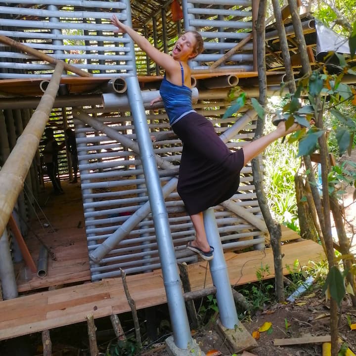 Bamboehuis: verblijf in een duurzaam bamboehuis gebouwd van snelgroeiende natuurlijke materialen — milieuvriendelijk en gezellig.