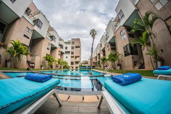 Dit is een van de weinige accommodaties in de omgeving met een zwembad.