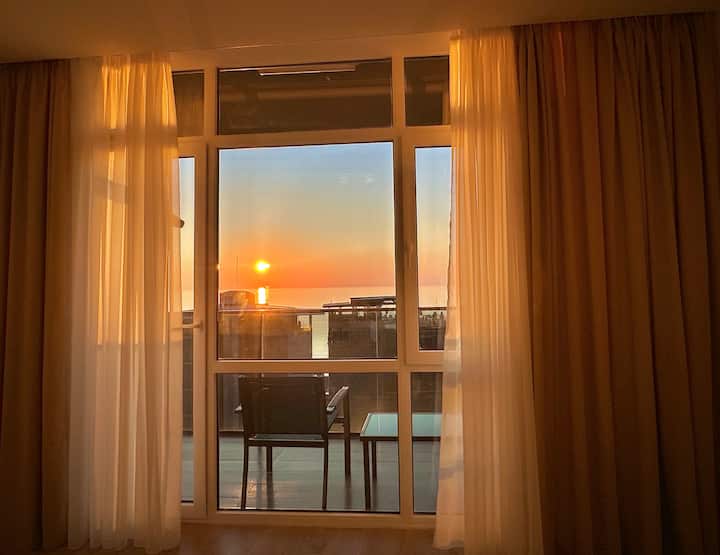 Stijlvolle studio met uitzicht op zee en zonsondergangen