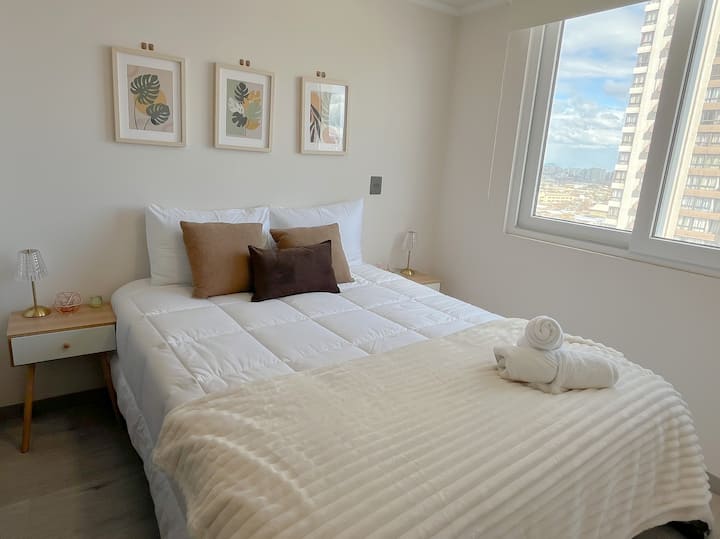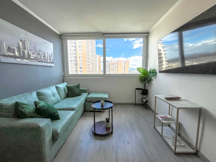 Charmant appartement in Ñuñoa, ideaal voor koppels of gezinnen van drie. Het heeft twee slaapkamers - één met een tweepersoonsbed en de andere met een slaapbank - evenals een uitgeruste keuken, eetkamer en gezellige woonkamer. Gelegen in Ñuñoa, in een veilige, culturele gemeente met een uitstekende kwaliteit van leven, dicht bij pleinen, cafés, emblematische parken zoals Plaza Ñuñoa en in directe verbinding met meerdere metrolijnen.