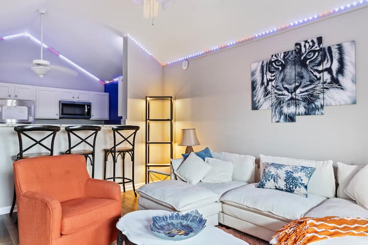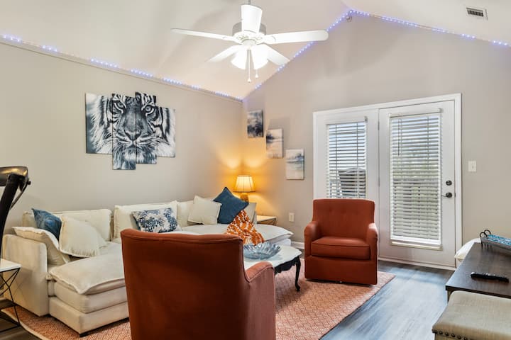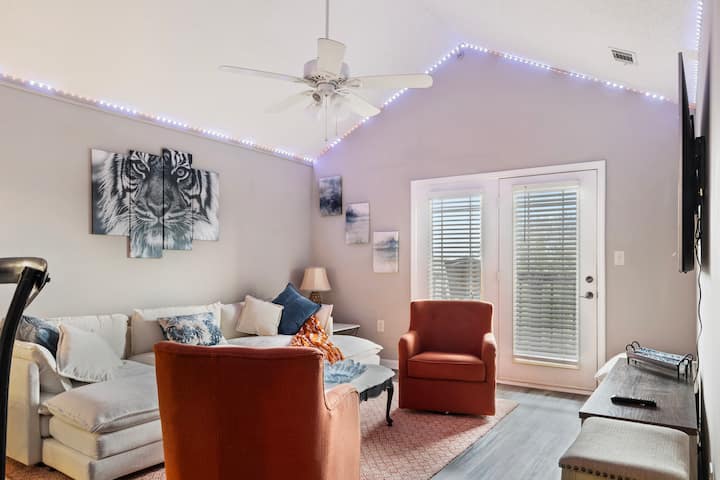 'TigerTown Tranquility' is een stijlvol, modern appartement op de derde verdieping met uitzicht op het prachtige Hartwell-meer en uitzicht op Death Valley vanaf je eigen balkon. Op minder dan 10 minuten van Clemson University, is het de ideale uitvalsbasis voor gezinnen, alumni of bezoekers voor campus-evenementen, afstudeerders, ouder-/spelweekenden of zomerkampen. Je bent een steenworp verwijderd van Lake Keowee, Lake Jocassee, talloze watervallen en wandelplekken, en je vindt winkels, lokale restaurants en Clemson-geest op slechts enkele minuten afstand!