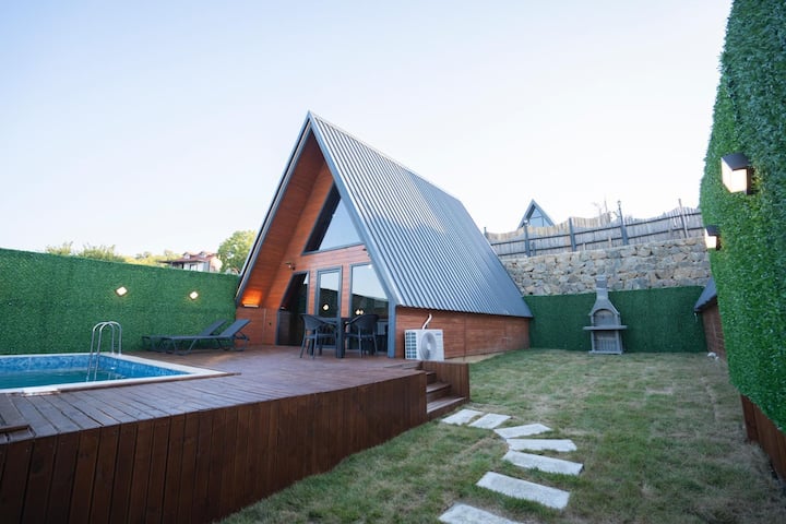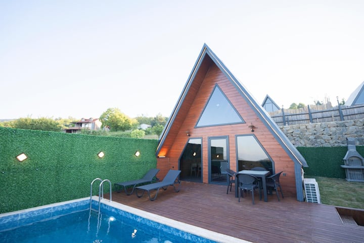 Dit is een van de weinige accommodaties in de omgeving met een zwembad.