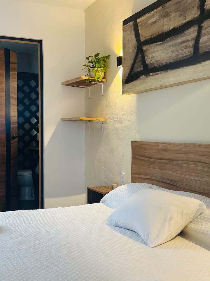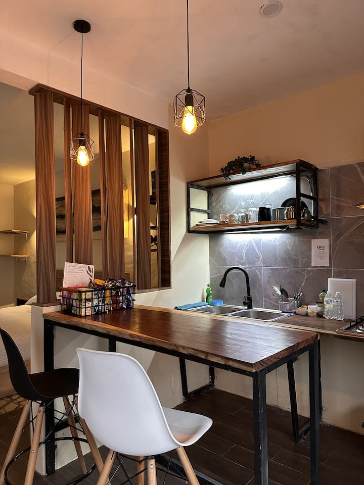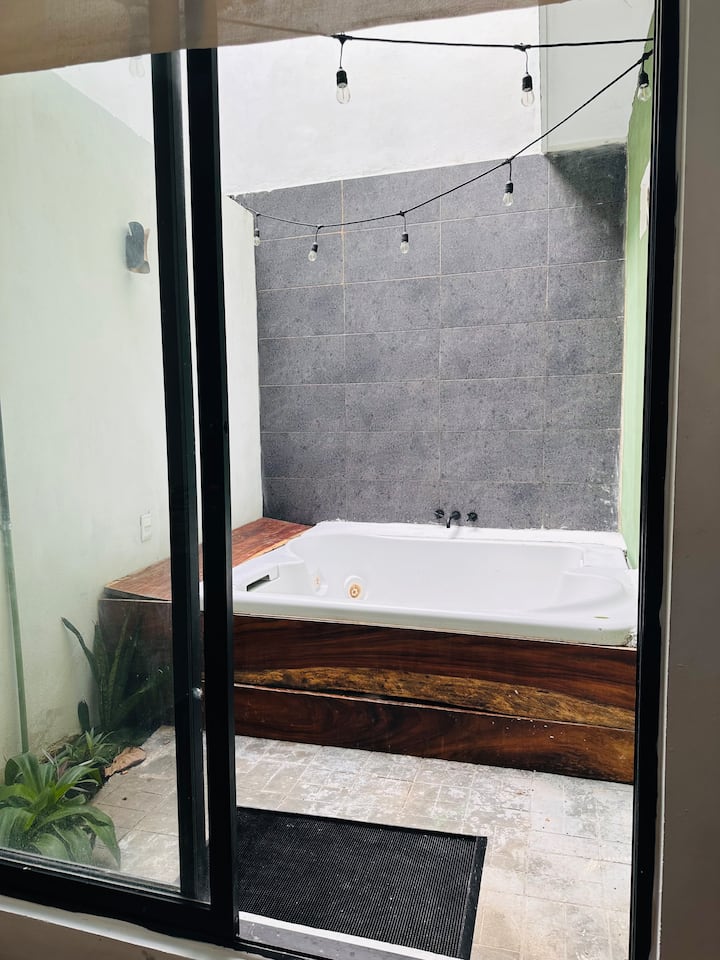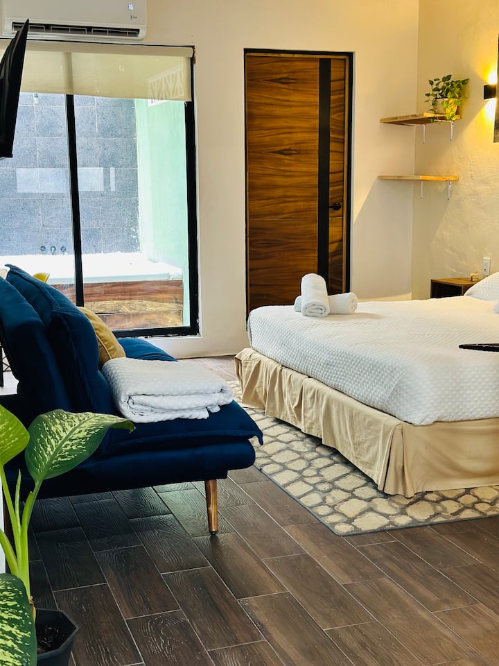 Kamer met kingsize bed, jacuzzi en ingerichte keuken