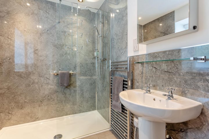 Deze verblijfplaats in boetiekstijl is ingericht met zachte, neutrale tinten en geruite accenten, waardoor een rustige, huiselijke ruimte ontstaat om in te ontspannen. Ga naar binnen via de ruime veranda – ideaal voor het opbergen van outdoor spullen – en voel je direct op je gemak in de open lounge/keuken/eetkamer. Deze uitnodigende ruimte beschikt over knusse zitplaatsen, een houtkachel voor gezellige nachten en een tv met Freesat, dvd-speler en draagbare stereo voor je entertainment. Bereid met lokale producten een heerlijke maaltijd in de goed uitgeruste keuken en geniet van een romantisch diner voor twee. Als de avond valt, trek je je terug in de kingsize slaapkamer waar een stevig houten bedframe, een luxe matras en frisse witte lakens een goede nachtrust beloven. Direct naast de deur biedt de eigen badkamer een inloopdouche en een ruime keuze aan gratis doucheproducten om je te helpen op te frissen en te ontspannen.