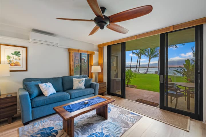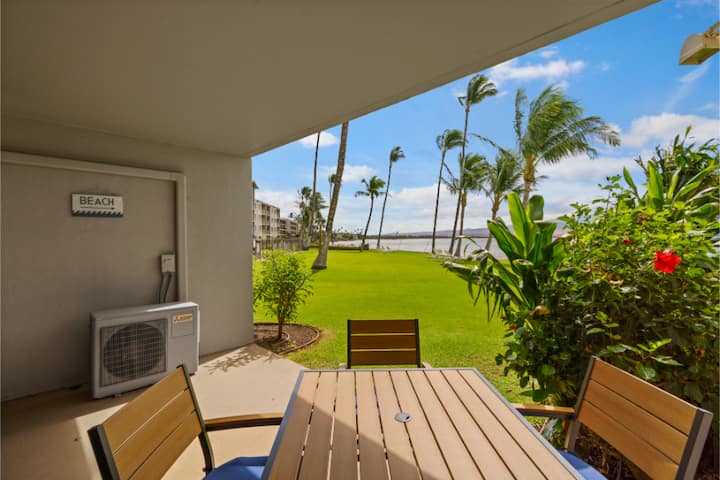 Ontspan en geniet van dit rustige appartement aan de oceaan in Maalaea Kai 102.Begin de dag met uitzicht op de zonsopgang over de baai, drink een kopje koffie terwijl u schildpadden spot en val in slaap met het geluid van de golven.Dit stijlvolle appartement op de begane grond biedt direct toegang tot het gazon en het strandpad.Wandel naar de haven, restaurants, winkels en het aquarium.Centraal gelegen om het eiland gemakkelijk te verkennen, maar toch rustig en niet te druk: het is de perfecte ontsnapping op Maui.