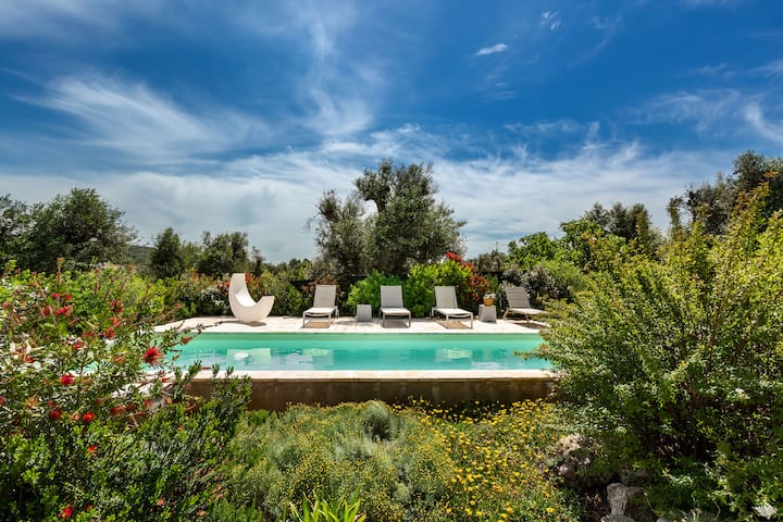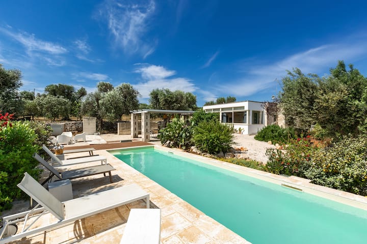 Biancaluna Luxury Retreat is een prachtige exclusieve residentie, met zwembad en solarium, gelegen in een grote tuin op het platteland tussen Ostuni en Cisternino, voor vakanties in Valle d'Itria.