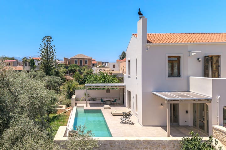 Villa Amano ligt op een zonnige olijfgaard, op slechts enkele minuten van de zee, en nodigt je uit in een wereld waar goddelijke rust en ambachtelijke stijl samenkomen. Wandel door de middeleeuwse elegante oude stad van Rethymno, charmante dorpjes, boulevard, levendige taverna's en geniet van de Kretenzische gastvrijheid. De villa biedt plaats aan maximaal 6 gasten. 3 slaapkamers, 3 badkamers, privé - verwarmd zwembad, groot zonneterras met ligbedden, complete keuken, buiten dineren, grote terrassen. 8 minuten naar het strand, 1 uur 7 minuten naar de luchthaven.