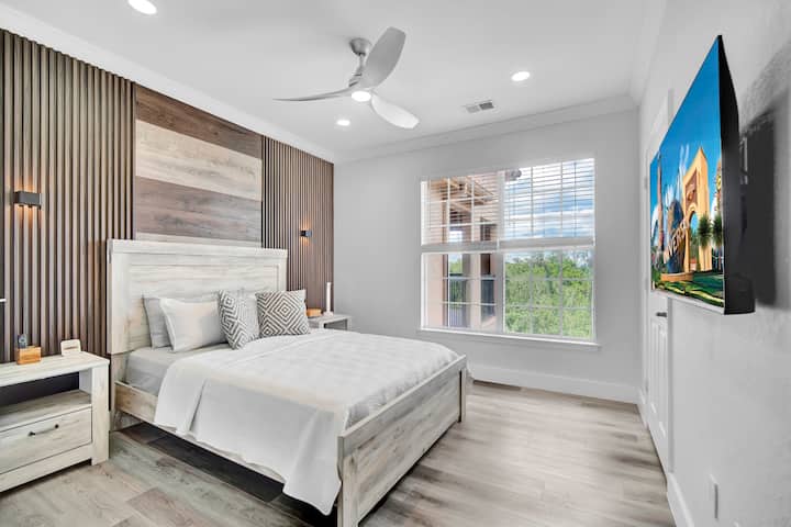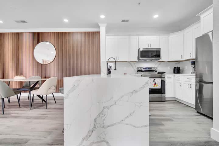 Ontspan in dit stijlvolle en ruime luxe appartement in de buurt van Walt Disney World, Universal Studios, SeaWorld en Islands of Adventure. Deze elegante ruimte is ontworpen voor comfort en gemak en beschikt over eersteklas meubels, een volledig uitgeruste keuken, pluche beddengoed, snelle wifi en voorzieningen in resortstijl. Ideaal voor gezinnen, koppels of zakenreizigers die op zoek zijn naar een ontspannen verblijf in de buurt van de topattracties van Orlando. Ontspan na een leuke dag met een rustige sfeer. Je perfecte thuis weg van huis.