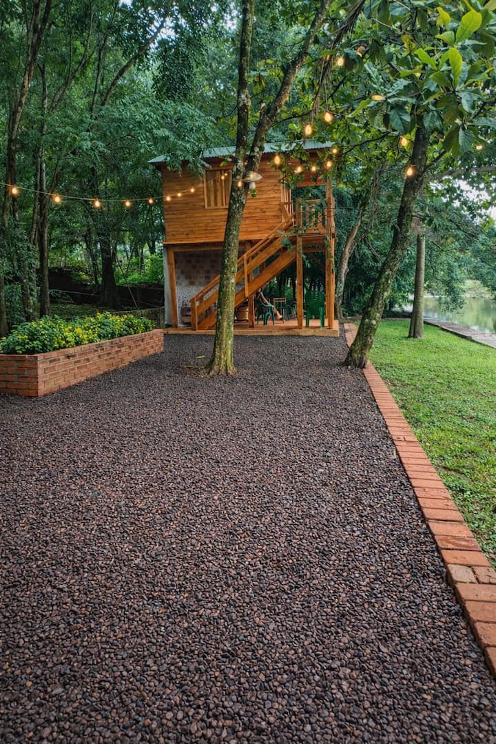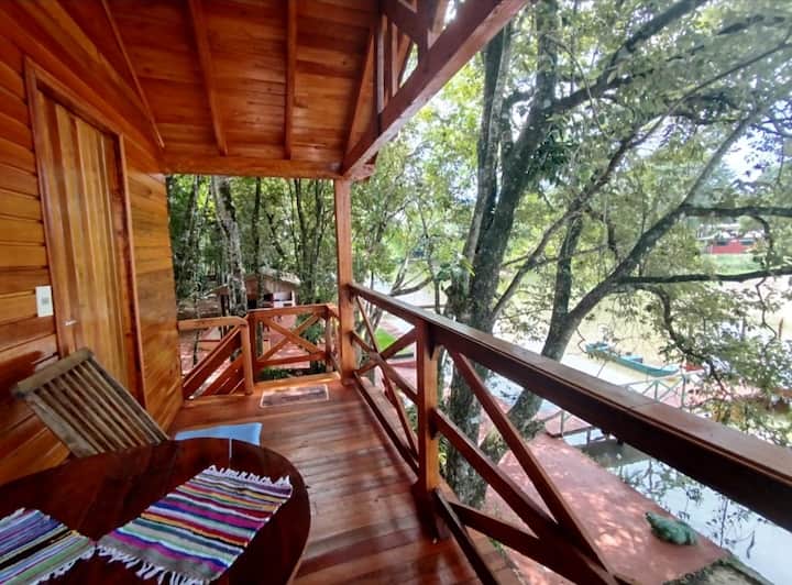 Huisje met uitzicht op de rivier (Huisje aan het meer)