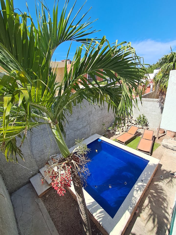 Dit is een van de weinige accommodaties in de omgeving met een zwembad.