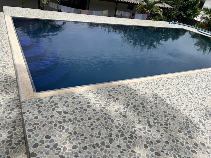 Dit is een van de weinige accommodaties in de omgeving met een zwembad.