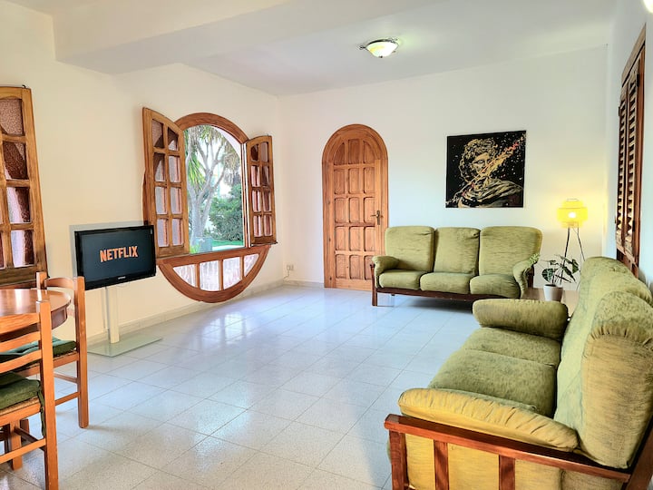 De woonkamer, ook luchtig en vol natuurlijk licht, is de perfecte plek om ontspannende avonden door te brengen met familie en vrienden. De comfortabele banken en de Smart TV met Netflix bieden een unieke entertainmentervaring.Je kunt je favoriete film, tv-serie of documentaire bekijken terwijl je van elkaars gezelschap geniet.