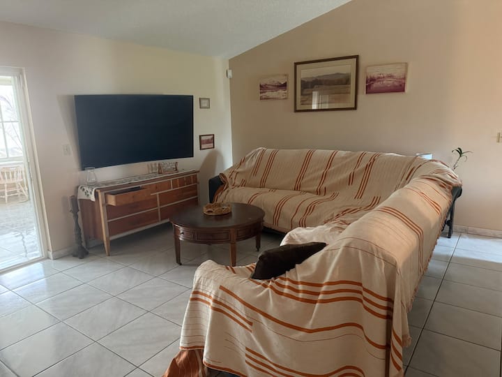 Geniet van uw verblijf in ons mooie huis! Met veel om je in de buurt te vermaken, verwacht je dat je verblijf vredig en vol plezier zal zijn. Ontspan in een hangmat bij het zwembad met uitzicht op de vijver, speel meer dan 3000 arcadegames, flipperen, we zouden klaar zijn voor een potje biljart met je als je zin hebt in gezelschap. Er is een fitnessruimte, aerobics- en fietsruimte, computercafé en indien nodig een eigen kantoorruimte. Je ruimte wordt gerespecteerd en het enige wat van je wordt verwacht is om een heerlijk verblijf te hebben. Handdoeken op verzoek. Laat het ons weten als er iets is wat we kunnen doen om je verblijf comfortabeler te maken. Ik kijk ernaar uit om je in ons prachtige huis te ontvangen!