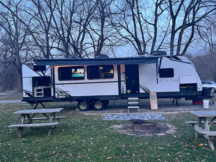 Hallo! Mijn naam is Logan Endicott en ik woon in Crawfordsville met mijn vrouw Karsyn en onze 1-jarige dochter. We houden van reizen, spelletjes spelen en tijd buiten doorbrengen. We gebruiken onze camper persoonlijk, maar wilden deze delen met anderen wanneer we zelf niet kamperen.