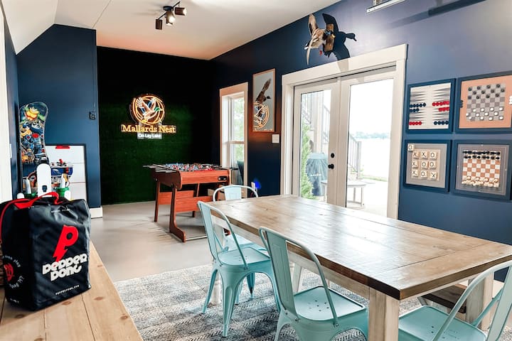 Maak vakantieherinneringen in Mallards Nest aan Lay Lake! Deze retraite met 3 slaapkamers en 2,5 badkamers biedt plaats aan 8 personen en beschikt over gezellige eend-thema-accenten, een speelkamer, uitzicht op het meer, een schommelbed op de veranda en een vuurplaats voor s'mores. Geniet van rustige ochtenden met koffie aan het water, feestelijke avonden bij het vuur en meerplezier met kajaks en vissen vanaf de kade. Perfect voor kerstuitjes, winteruitjes of het vroeg boeken van je droomzomerweek - dit juweeltje aan het meer wacht op je! Boek vandaag nog!
